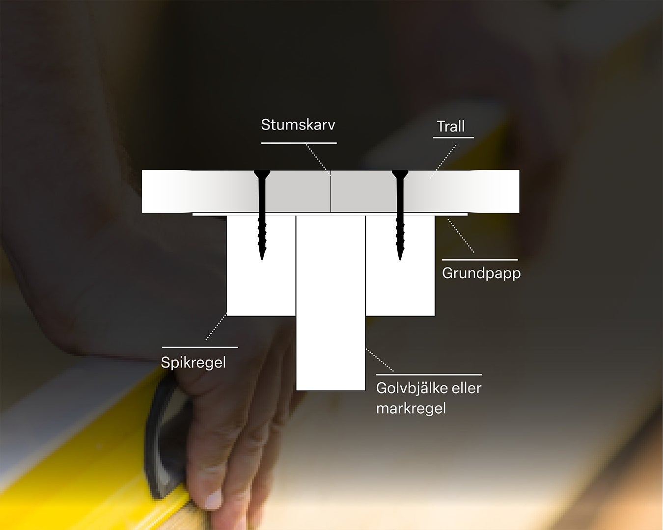 - Skruva fast två spikreglar på vardera sida om golvbjälken eller markregeln.