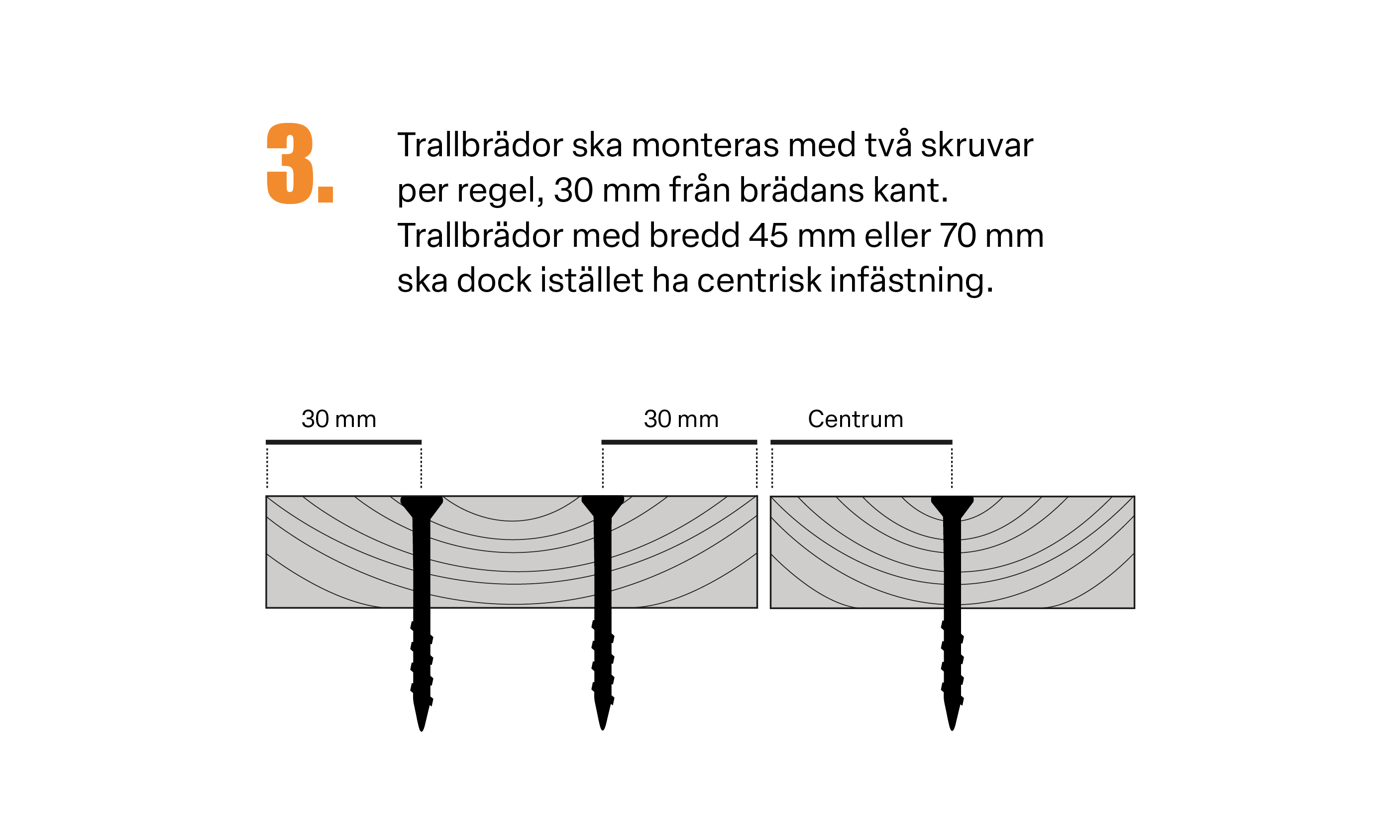 - Skruva fast trallbrädorna i de förborrade hålen.