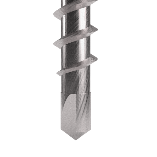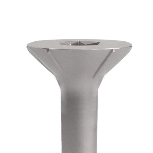 Rillorna fräser ned ytan vid försänkning av skruven.